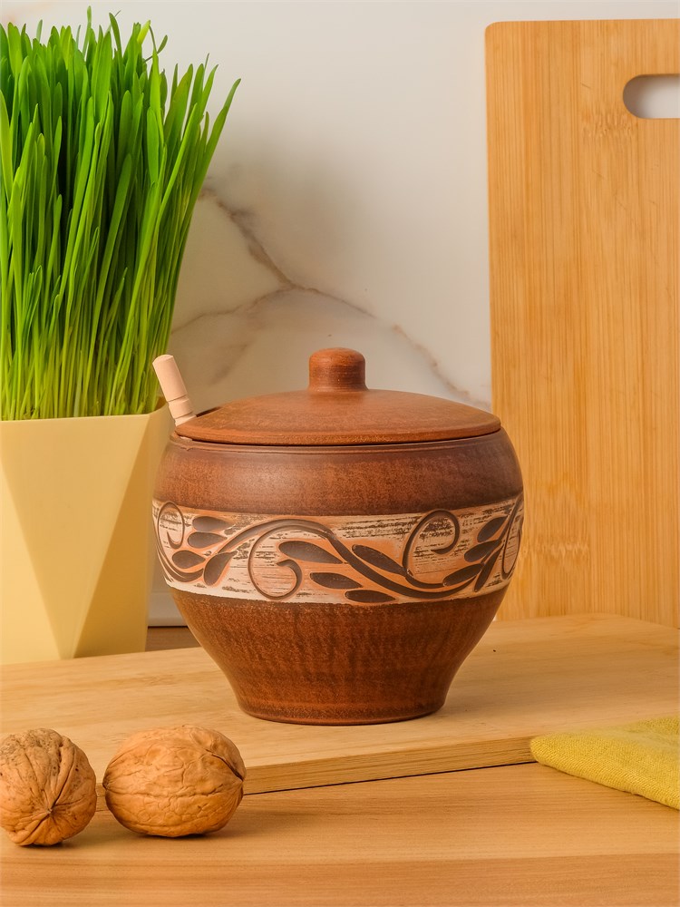 69-331/1М1 Емкость для меда №1 (Орнамент) 0,55 л. ; высота - 10см, ширина - 12см, длина - 12см (2) (2) (2)