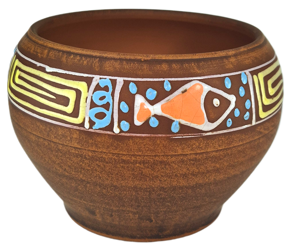 Молочение керамики — это очень древний и, пожалуй, самый экологически чистый метод обработки и декорирования глиняной посуды. Он заключается в следующем: после первого обжига керамическое изделие из красной глины опускают в молоко и дают пористой глине впитать в себя жидкость, а после этого посуду обжигают в печи еще раз. После молочного обжига глиняная посуда обретает красивый карамельный цвет, становится практически водонепроницаемой, более приятной и гладкой на ощупь.